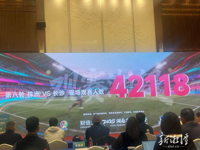 “湘超联赛”媒体见面会在长沙举行,第一阶段赛事数据出炉:本地观赛人数116万人次,消费超71亿元(记者李涛)11月3日下午,2025湖南财新金控省足球联赛(以下简称“湘超联赛”在湖南长沙举行)媒体见面会总结了第一阶段的完成情况。一系列亮眼数据表明,本次赛事已展现出空前的公众关注度和对当地经济的显着促进作用,也标志着第二阶段更加激烈的比赛正式开始。数据惊人,“湘超联赛”的热度正在席卷整个湖南省。数据表明,湘超联赛已经不仅仅是一场体育赛事,已经成为全民参与的文化赛事。自9月7日启动以来,活动在多个平台进行宣传,各大社交媒体平台热点话题累计转发量达73.3亿次。通过构建立体完整的传播生态圈,湘超联赛迅速获得全网热度,实现了传播领域“新人追赶”的局面。在竞技层面上,前八轮比赛非常精彩。联赛总进球数达到141个,场均进球数达到2.5个,保证了比赛的观赏性。常德队的赵文迪和永州队的高翔以5个进球领跑进球榜。常德队和衡阳队共打进17球,展现出最强的攻击力。防守方面,长沙队防守稳固,8场比赛仅丢2球。值得注意的是,得益于联盟规定“每队必须有三名高中生上场”,学生运动员成为舞台上闪亮的明星。他总共打进70球,其中大学生时打入45球,高中生时打进25球。湖南U18男足共有14名球员入选参加第十五届全国锦标赛决赛。青春风暴已经成为湘超联赛最鲜明的标签之一。宣传视频第一阶段:42118人,创下甲南超级联赛开赛以来单场观众人数新纪录。湘超联赛非常受欢迎,这项运动的经济影响也很大。湘超联赛的火爆,在当地观众中引起了难以置信的疯狂。第8轮株洲队与长沙队的比赛观众人数达到42118人,创下了湘超联赛开赛以来单场比赛的观众人数新纪录。热烈的气氛充分证实了这一点湖南球迷热情高涨,足球群众基础深厚。强烈的关注直接带来切实的经济效益。目前,已有11家省级品牌直接赞助该赛事,另有7家省级企业参与联合产品开发。更令人惊喜的是,首期直接带动消费71.59亿元,各赛区累计接待游客3454.2万人次。赛事持续对餐饮、住宿、交通、文化旅游等行业产生拉动作用,足球正在成为地区经济发展的动力。这个悬念亟待解决,“湘超之夜”令人翘首以待。随着今天的媒体见面会,湘超联赛第二阶段比赛也拉开帷幕。哪支队伍最终将脱颖而出,晋级决赛,谁将获胜,这将是令人兴奋的事情。活动组织者还宣布拥有所有奖项以及获胜者梦寐以求的奖杯和奖牌设计将在12月27日的总决赛上揭晓。这一重大公告是在今晚联赛结束后举行的“湘超之夜”颁奖晚会上宣布的。据介绍,“湘超之夜”颁奖典礼将以“公众参与”和“公众定义”为核心,将广泛向社会征集具有湖南地域特色和标志的颁奖创意和奖杯奖牌设计方案。相关信息将通过官方平台“湖南足协”微信公众号及时发布。媒体会上还介绍了湖南超级联赛第二赛季的招商活动。 “这两个月来,一系列精彩的比赛点燃了湖南三河和四河之间的热情。”官方表示,湘超联赛已过半,第二阶段对决将更加激烈。钍作为湖南人民的足球盛典,湖南足球节将以其独特的魅力,不断为湖南足球事业注入动力,打造体育强部。